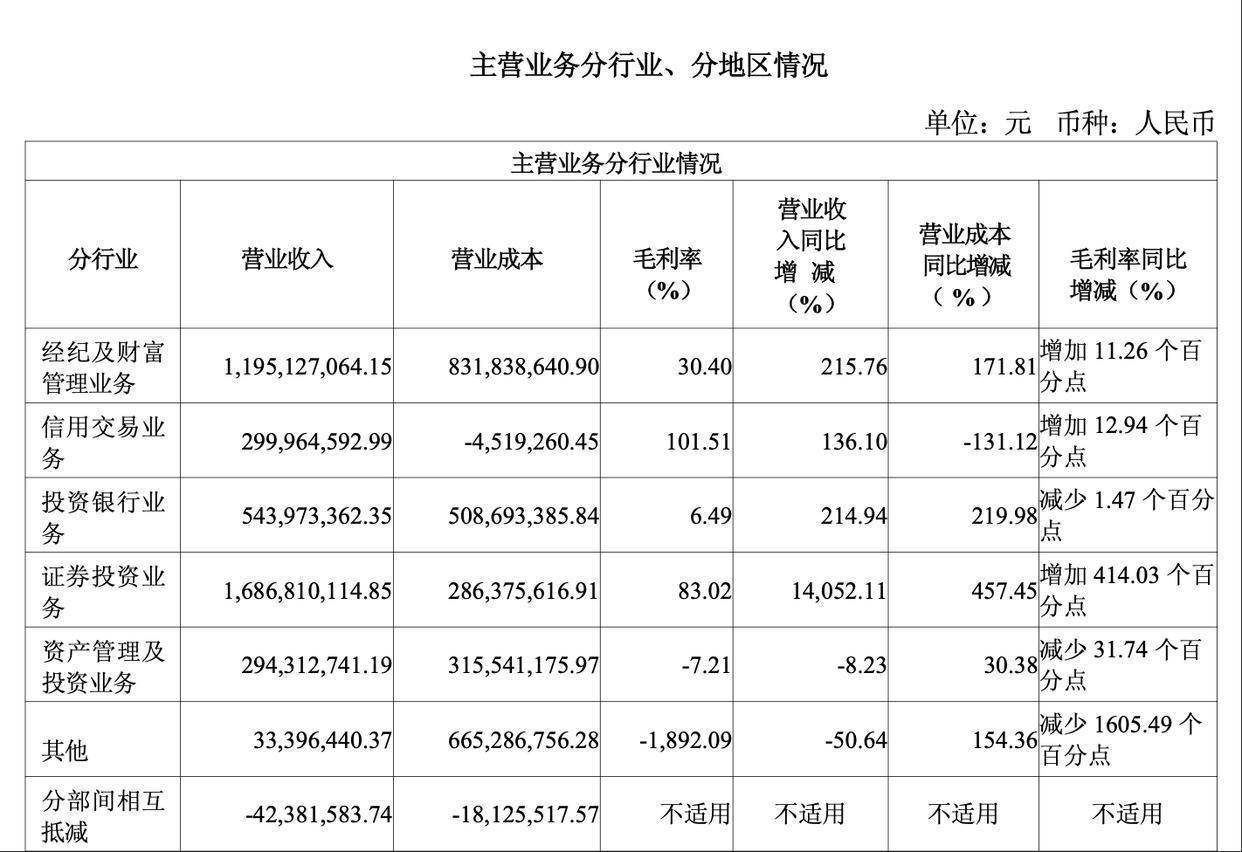 此外,公司的经纪及财富管理业务、投行业务均表现不俗。据披露,上半年这两大业务分别实现收入11.95亿元、5.44亿元,同比增幅分别为215.76%、214.94%。
