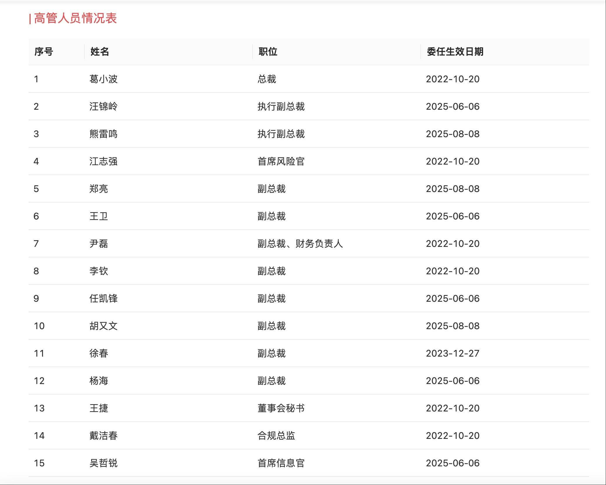 高管团队方面,汪锦岭、熊雷鸣被任命为执行副总裁,其他高级管理人员包括:江志强、郑亮、王卫、尹磊、李钦、任凯锋、胡又文、徐春、杨海、王捷、戴洁春、吴哲锐等。这一高管团队的组合,有近一半来自民生证券,保留了原国联证券和民生证券的核心管理人才。这一管理团队的搭建,也充分考虑了业务互补和人才优化配置,为合并后的整合与发展提供了组织保障。
