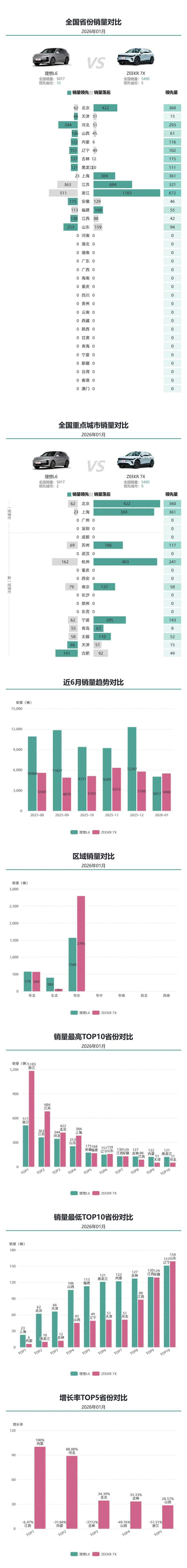 这里是两家共同的核心战场,极氪7X卖出2795辆,理想L6卖出1568辆,前者优势明显。具体到城市,浙江市场极氪1183辆对理想515辆,江苏684辆对367辆,差距都在两倍左右。